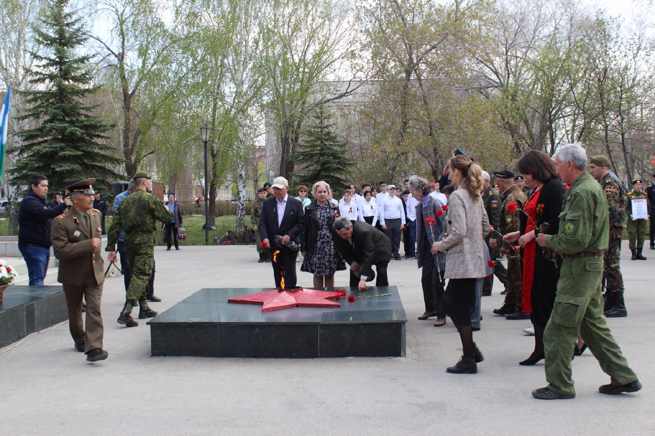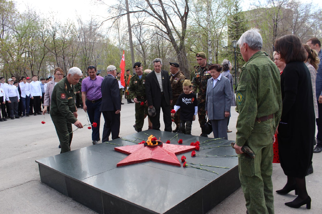 В знак благодарной памяти и уважительного отношения к воинам почетные гости возложили цветы к мемориалу «Вечный огонь».
