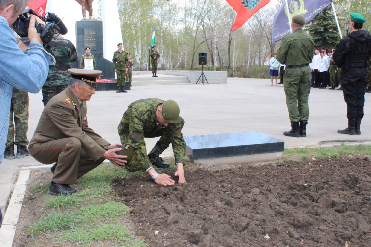 Сегодня в Сибае у мемориала «Вечный огонь» прошёл республиканский марафон «Земля памяти». Горожане стали свидетелями торжественной церемонии заполнения землей солдатской каски. 9 мая на Советской площади в городе Уфе гильза с землей, набранной во всех городах и районах республики, будет заложена в основание памятника М.Шаймуратову.