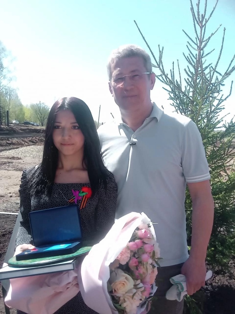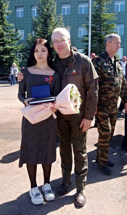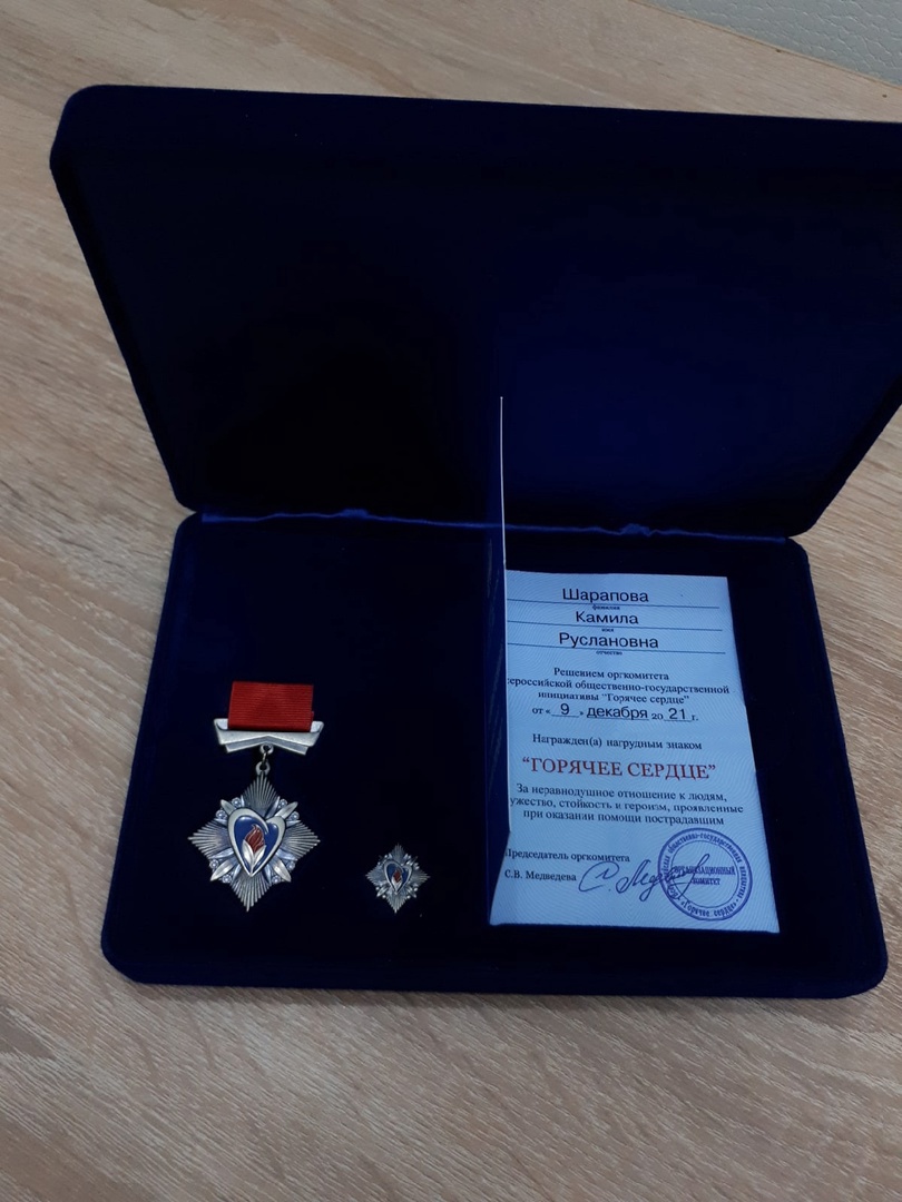 8 мая на территории военно-патриотического парка «Патриот» в селе Алкино-2 ученице 9 класса школы №8 Камиле Шараповой вручили нагрудный знак «Горячее сердце» и диплом «За мужество, стойкость и героизм, проявленные при оказании помощи пострадавшим».