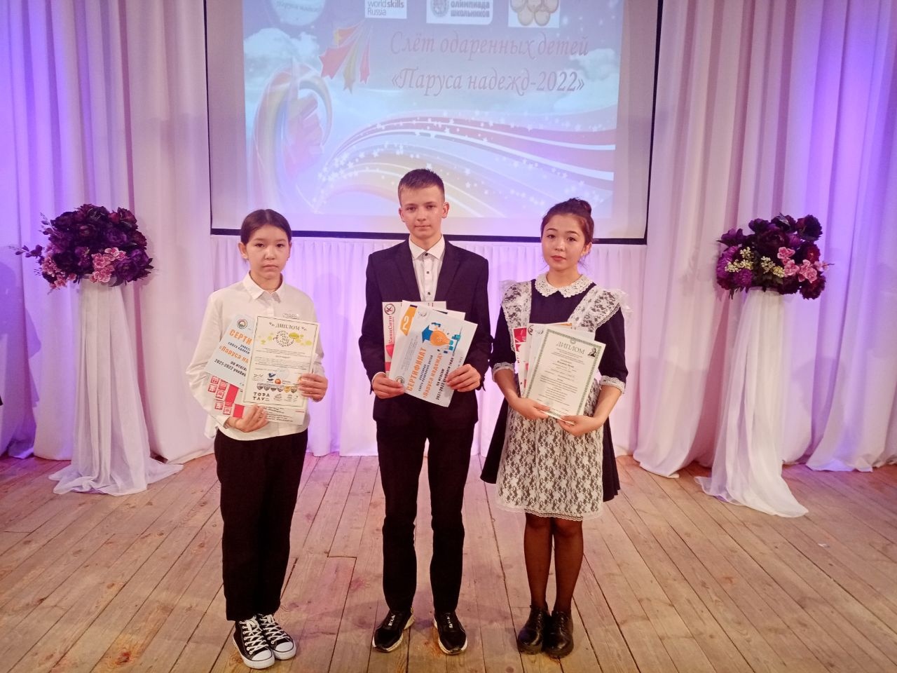 Сегодня в Центре детского творчества прошло чествование одаренных детей города "Паруса надежд - 2022", где чествовали 3 учащихся нашей школы. Двое из них - выпускники 9-х классов Искужина Лилия и Шитов Никита, неоднократные победители предметных олимпиад муниципального этапа, призёры научно-практической конференции "Импульс", победители Регионального чемпионата «Молодые профессионалы». И наша маленькая восходящая звёздочка ученица 6А класса Ермакова Аида - победитель Республиканского слета-конкурса. Желаем нашим звездочкам всегда гореть так же ярко, покорять вершины знаний, не останавливаться на достигнутом! Мы гордимся вами, ребята!