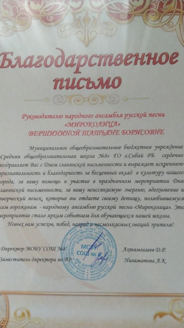 24 мая весь славянский мир отмечает поистине великий праздник – День славянской письменности и культуры, приуроченный ко Дню памяти святых равноапостольных братьев Кирилла и Мефодия. Сегодня для учащихся школы №8 было проведено мероприятие, посвященное к этой дате. Главной целью мероприятия является воспитание любви к Родине, чувства гордости за страну и уважение к народным традициям. На мероприятии принял участие народный ансамбль русской песни «Мироколица», рук. Т.Б. Вершинина. Ансамбль познакомил учащихся с особенностями русского народного костюма. Рассуждали об уважении к народной культуре, о необходимости сохранения национального наследия. Коллектив исполнил три разнохарактерные песни, которые произвели огромное впечатление на детей.Мероприятие прошло на хорошем уровне.