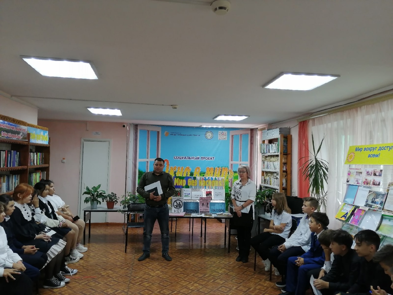 С таких слов начался информационный час под названием "Терроризм - я предупрежден!", который проводился для учащихся 6в класса в библиотеке №5. На мероприятие был приглашен старший оперуполномоченный уголовного розыска Давлетбаев Азат Юлаевич. Целью мероприятия было рассказать детям о том, что такое терроризм, как ему противостоять и об основных правилах поведения в условиях угрозы терактов. Особое внимание было уделено страшной трагедии Беслана и необходимости солидарности в борьбе против угрозы терроризма. Ребята внимательно слушали и отвечали на вопросы. В ходе беседы ребята узнали много новой полезной информации.