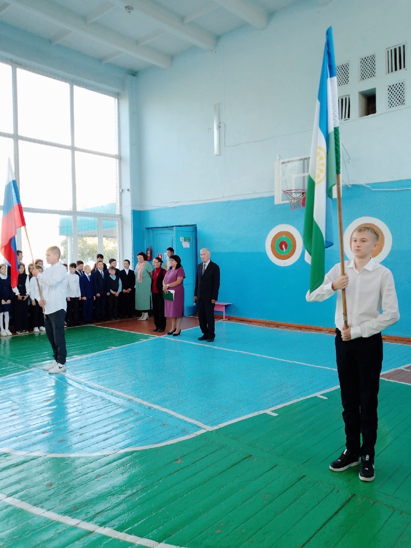 Учебная неделя началась с поднятия флага и исполнения гимна РФ и РБ.