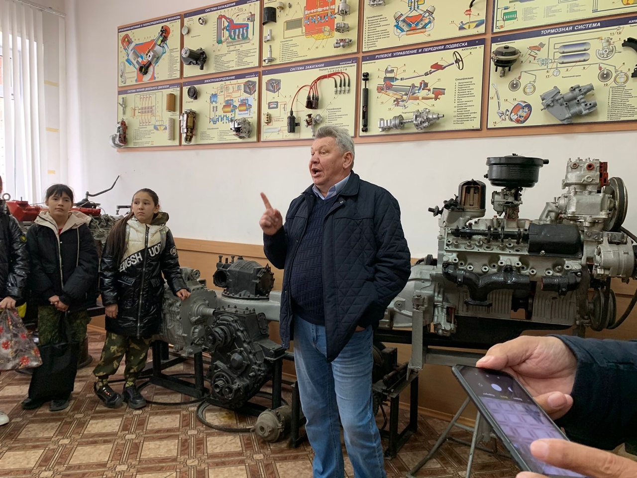 Старшеклассники познакомились с учебно-материальной базой, кабинетами для лабораторно-практических занятий по техническому обслуживанию транспорта, посидели за рулем грузовых автомобилей «Урал» «КамАЗ».