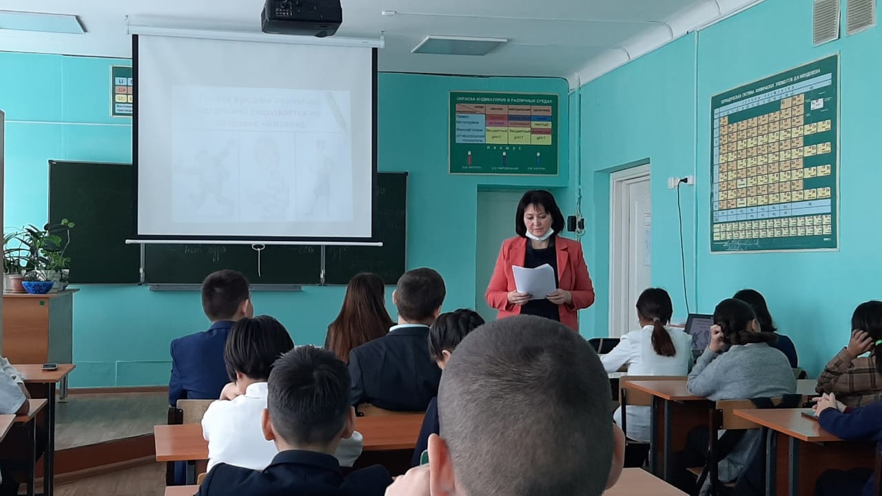 С целью профилактики вредных привычек среди подростков, формирования у ребят позитивного отношения к своему здоровью и пропаганды здорового образа жизни сотрудником Модельной библиотеки-филиала № 7 Зульфией Амировной Хасановой для учащихся 7 А класса школы был проведен информационный час «Вредные привычки и их влияние на здоровье человека». В самом начале с ребятами определили, что обозначает понятие «привычка», разобрали виды привычек, прослушали истории о влиянии курения, алкоголя, наркомании на организм. Затем учащиеся отвечали на вопросы и высказывали своё мнение о том, как влияют те или иные привычки на здоровье человека. На вопрос «какую альтернативу вредным привычкам вы можете предложить?» ребята ответили: занятия спортом, ведение здорового образа жизни, активный отдых, чтение книг. Очень радует, что многие ребята посещают спортивные кружки, читают художественную литературу. Также для формирования полезных привычек ребятам была предложена практическая работа, создать свой календарь «Правило 21 дня». Ребята сделали вывод, что вредные привычки ни к чему хорошему не приводят, и что "наше здоровье в наших руках". В завершении беседы сотрудник библиотеки призвал ребят вести здоровый образ жизни, организовывать свой досуг, больше читать интересных книг.