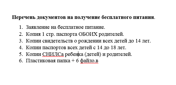 Уважаемые, родители! С 25 августа начинается прием документов на бесплатное питание.
